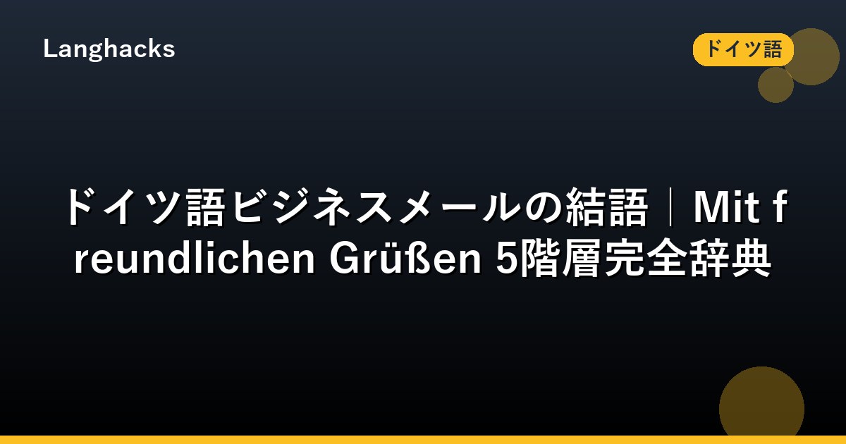 既存記事のドイツ語ビジネスメール基本では「Mit freundlichen Grüßen」のみ扱いましたが、本記事は5階層の使い分けを完全網羅します。