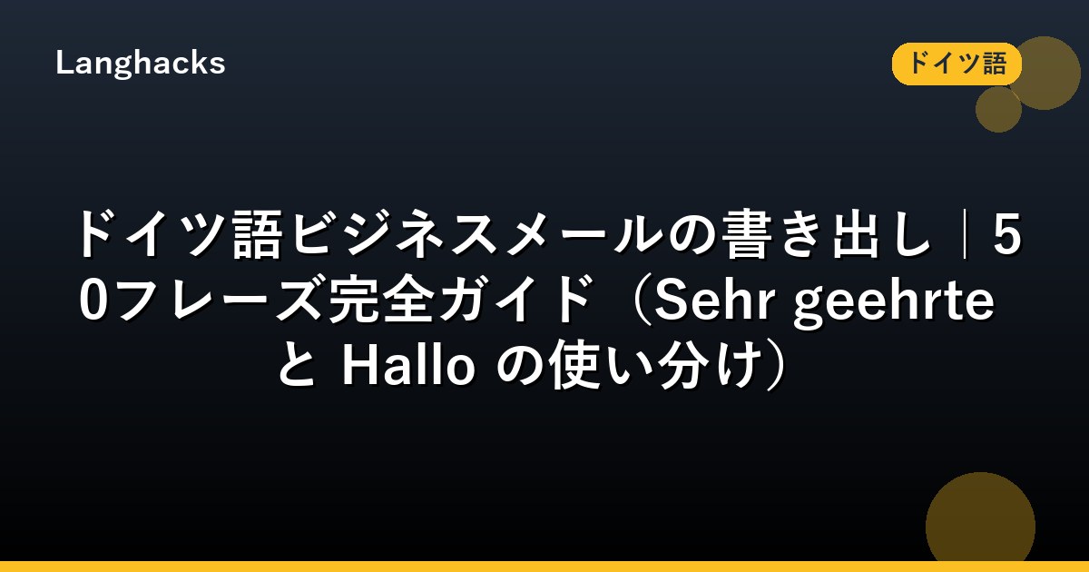 本記事では50フレーズを5カテゴリで展開し、Anrede選択の4軸マトリクスまで解説します。