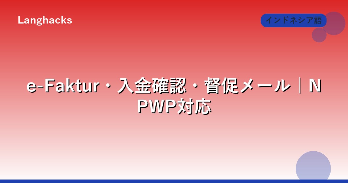 このページではe-Faktur発行から入金確認、3段階督促までを、ジャカルタ経理実務に基づいて整理します。