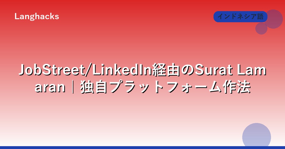 インドネシアの応募プラットフォームはJobStreet、Glints、Kalibrr、Indeed Indonesia、LinkedInの5大主流です。