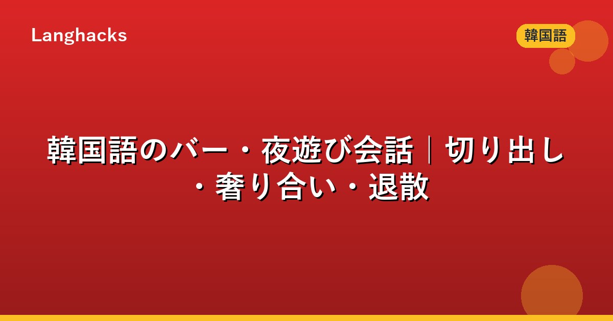 観光中なら 韓国語の旅行基本フレーズ50選 も役立ちます。バー文化は「節度を持って楽しむ」が韓国でも王道で、安全と礼儀を意識して活用しましょう