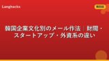 韓国ビジネスメールの基礎は韓国語のビジネスメール・手紙の書き方完全ガイドを参照してください。
