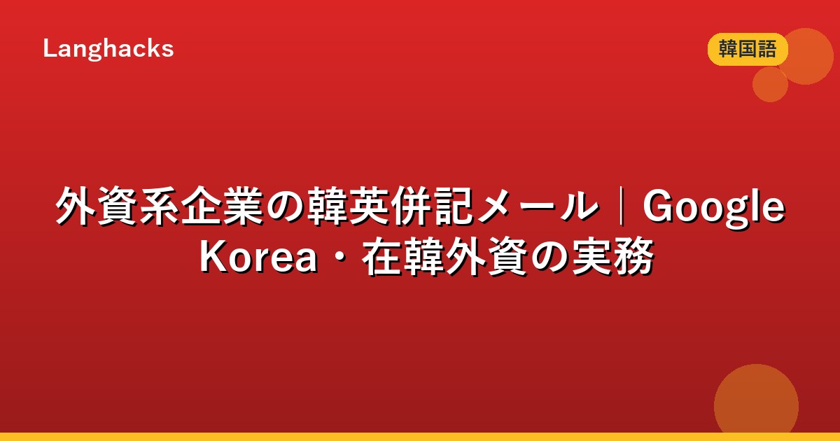 本記事では日本人担当者が韓国の外資系企業と協業する際に見落としやすい、韓英併記の境界・時差配慮・ディスクレーマー処理までを体系化します。2026年4月時点のGoogle Korea・金融系外資の実務を前提とします。