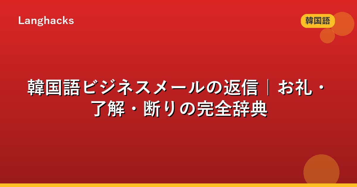 韓国語ビジネスメールの返信|お礼・了解・断りの完全辞典