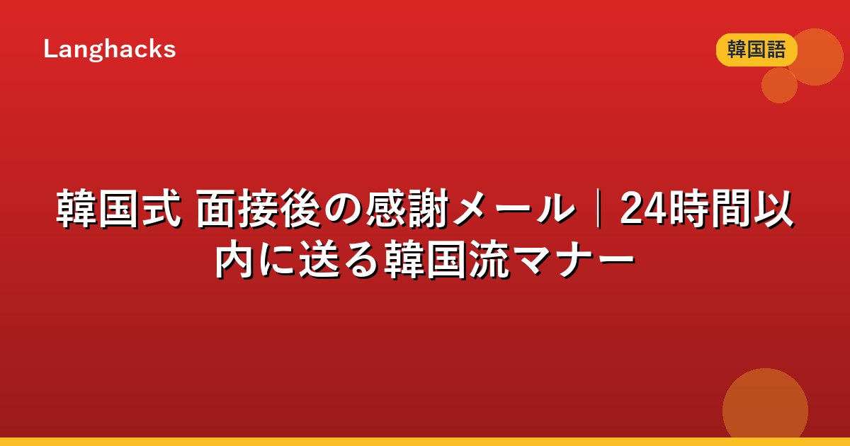 韓国の面接後24時間以内の감사メールはプロフェッショナルマナーの印です。