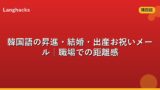韓国ビジネスメールの基礎は韓国語のビジネスメール・手紙の書き方完全ガイドを参照してください。
