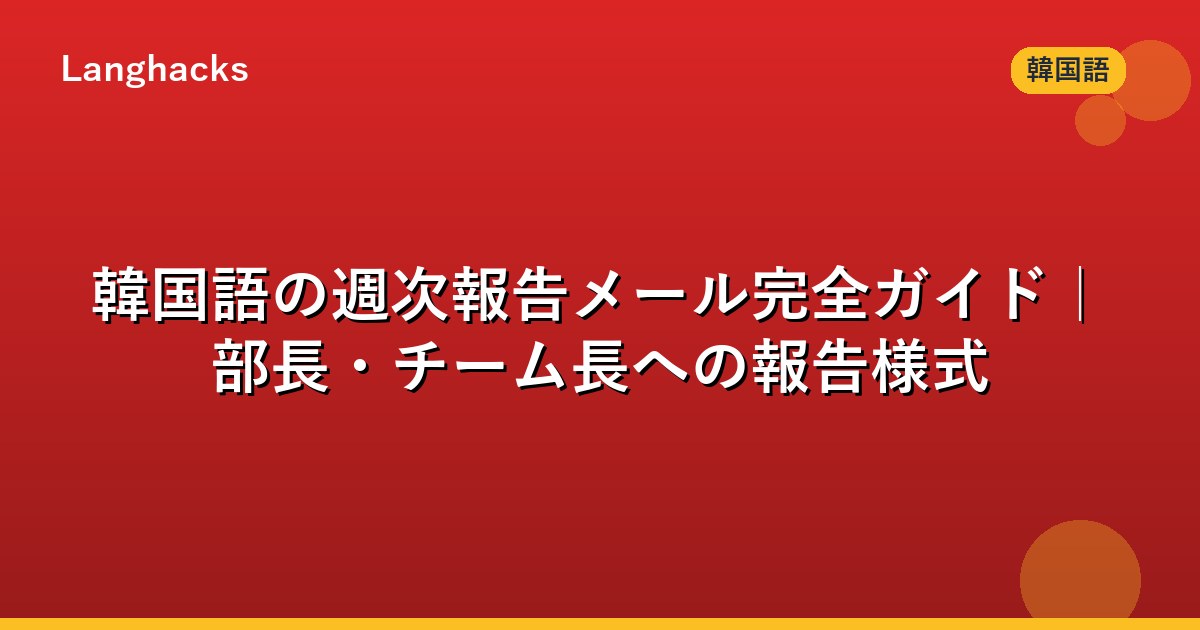 本記事は부장님・팀장님に送る週次報告の構造と決裁ラインCC処理を3段表記(ハングル/ローマ字/日本語直訳)で体系化します。