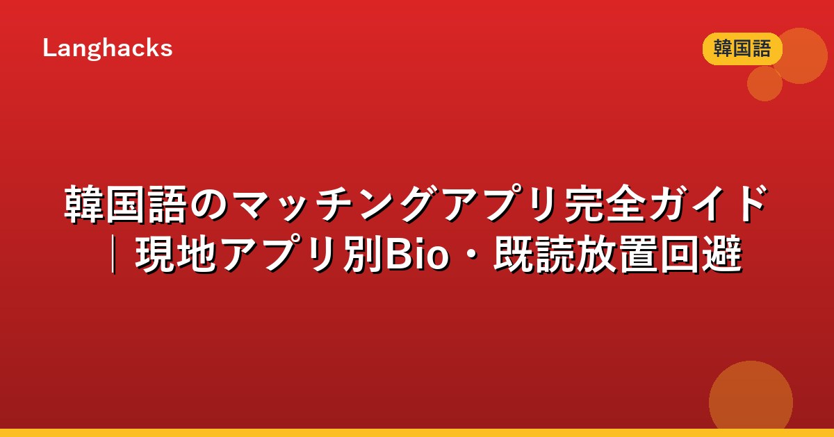 韓国旅行で使える基本フレーズは 韓国語の旅行基本フレーズ50選 、ビジネス文脈なら 韓国語のビジネスメール基本 もチェックしてみてください。英語版の参考として 英語のマッチングアプリ完全ガイド も比較学習に役立ちます。