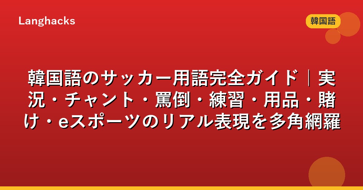 本ページは韓国のサッカー(축구、チュック)にまつわる現地語表現を、教科書ではなく観戦現場の目線で網羅したガイドです。