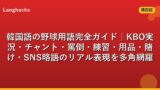 詳細は野球(야구)韓国語完全ガイドでKBO実況・球団別応援歌・직관文化・大谷関連の現代スラング・球種用語まで深掘りしています。