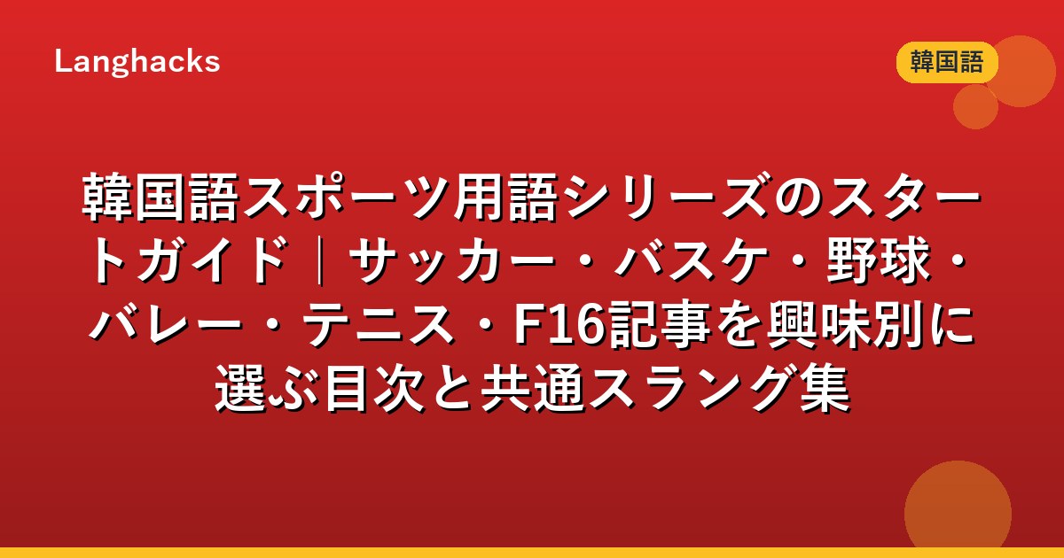 本ページは韓国語スポーツ用語シリーズ全6本(축구・농구・야구・배구・테니스・F1)のスタートガイドです。