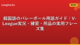 詳細はバレー(배구)韓国語完全ガイドでV-League実況・김연경関連用語・女子戦応援文化・ビーチバレー固有用語までコンパクトに整理しています。