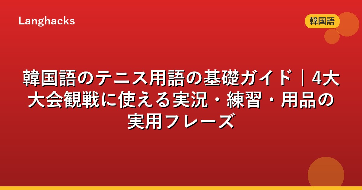 本ガイドでは韓国語のテニス用語を、実況・練習・用品・医療・ルール・4大大会観戦まで横断的に整理しました。