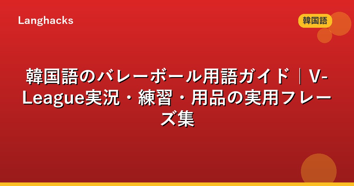 姉妹編は韓国語のスポーツ用語ハブ、サッカー、バスケ、野球、英語版は英語のバレーボール用語完全ガイドをどうぞ。