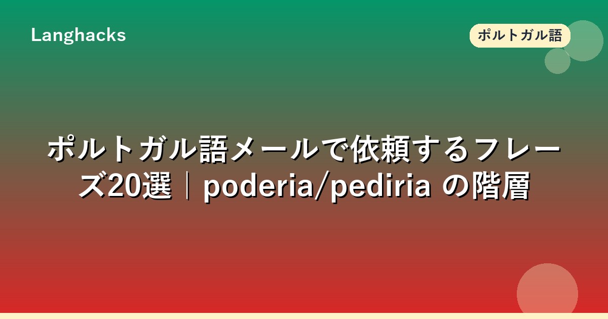本記事は依頼フレーズ20選を「Solicito」「Peço」「Pediria」「Poderia」「Seria possível」など丁寧度別に整理した実務辞典です。