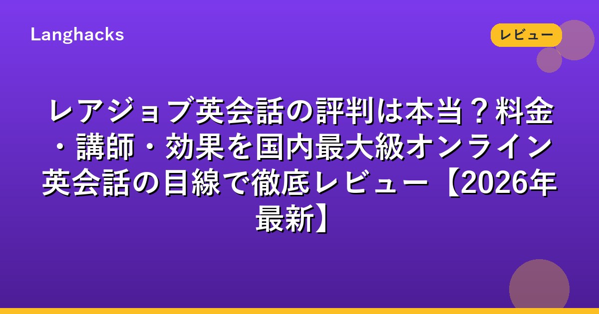 本記事はLanghacks(30言語以上の学習法を扱う多言語サイト)が、レアジョブ英会話を学習者目線で徹底的にレビューする決定版ガイドです。