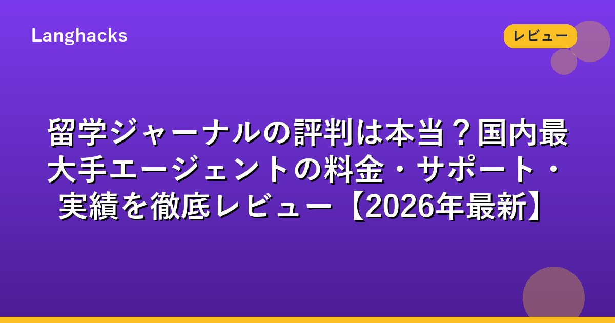 本記事はLanghacks(30言語以上の学習法を扱う多言語サイト)が、創業1971年の国内最大手留学エージェント「留学ジャーナル」を、利用検討者の目線で徹底レビューする決定版ガイドです。
