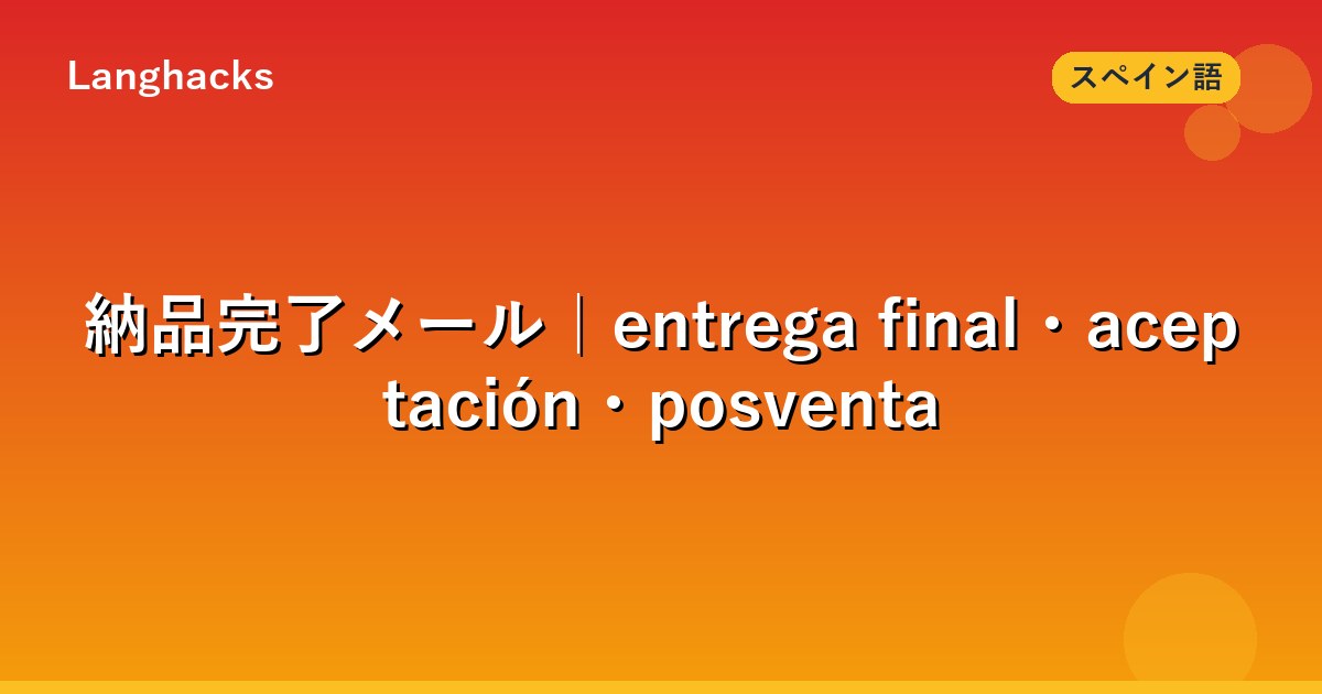 「entrega(納品宣言)→ aceptación(検収)→ posventa(アフターサポート)」の流れに沿うのが標準です。