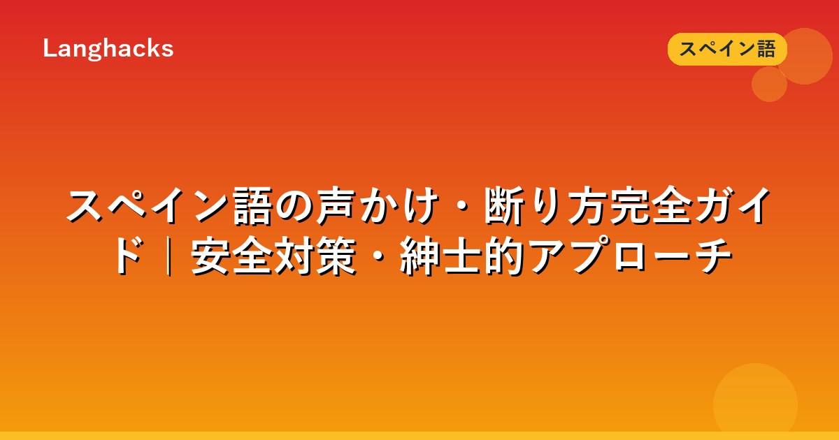 スペイン語の声かけ・断り方完全ガイド|安全対策・紳士的アプローチ