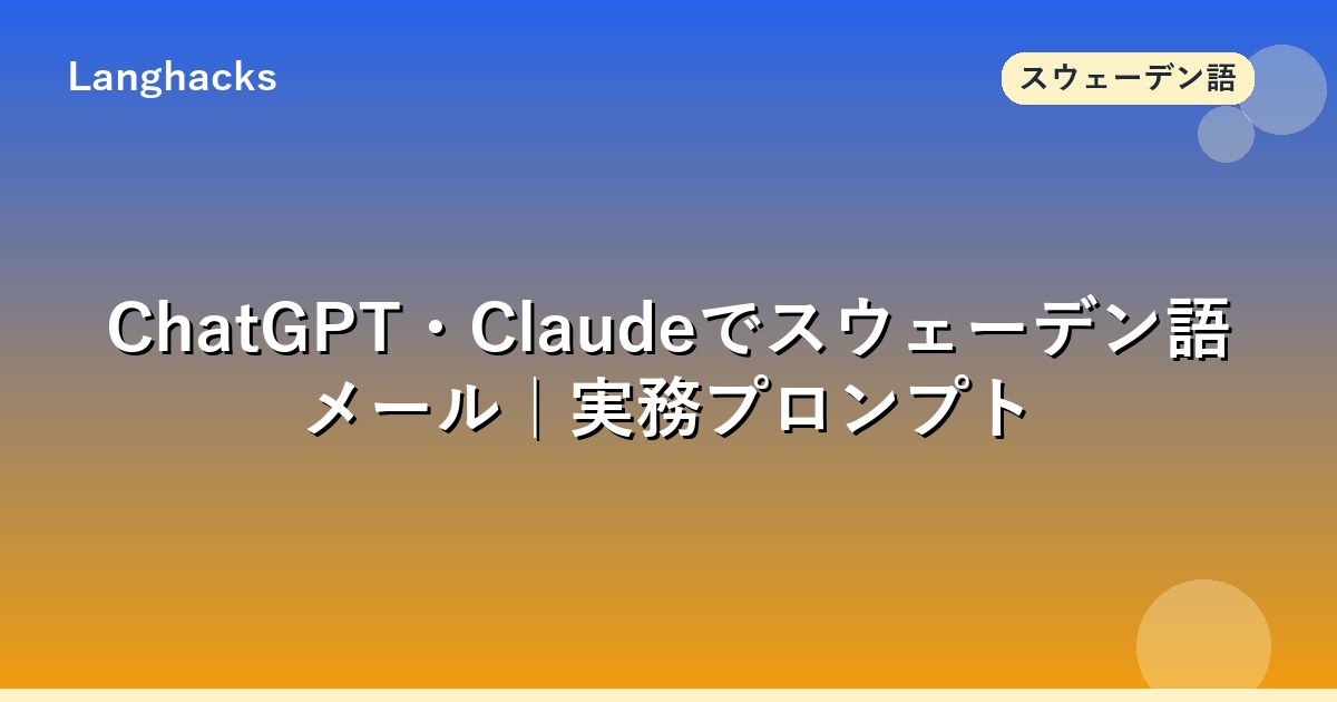 このページはChatGPT・Claudeでスウェーデン語ビジネスメールを書く実務プロンプト集です。情報量が多いのでブックマーク推奨。