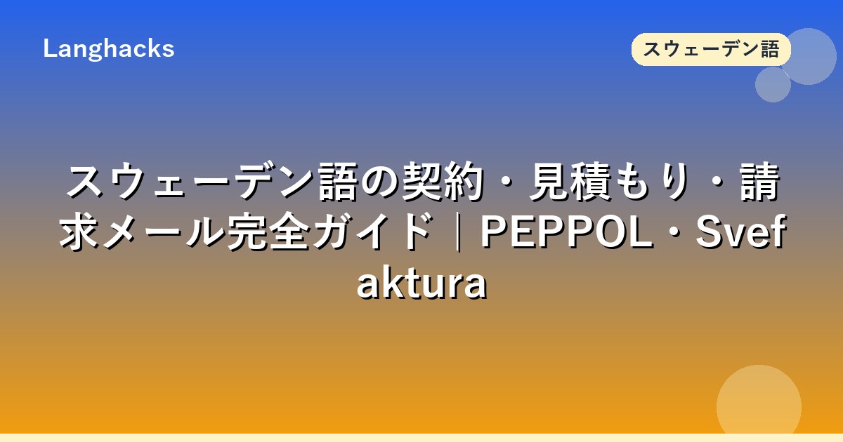 このページはスウェーデン語の契約・見積もり・請求メールに特化したハブガイドです。情報量が多いのでブックマーク推奨。