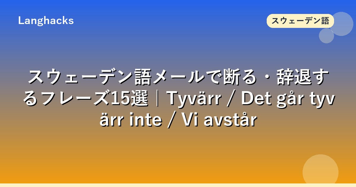このページはスウェーデン語ビジネスメールの断り表現に特化した辞典です。情報量が多いのでブックマーク推奨。