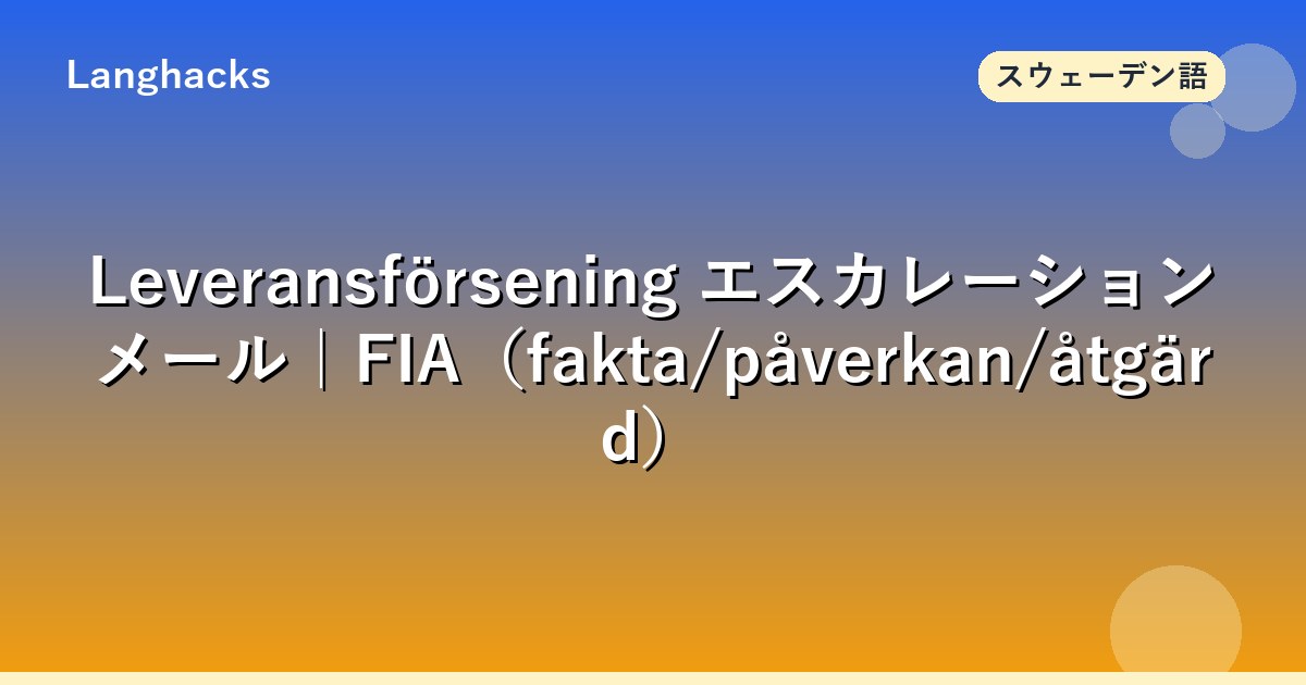 このページはスウェーデン式の遅延(Leveransförsening)エスカレーションメールに特化したテンプレ集です。情報量が多いのでブックマーク推奨。