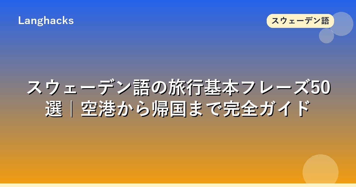 スウェーデン語のレストラン会話、スウェーデン語の祝祭挨拶、スウェーデン語のスモールトーク、スウェーデン語のマッチングアプリ完全ガイド、英語の旅行基本フレーズでさらに学習を深められます