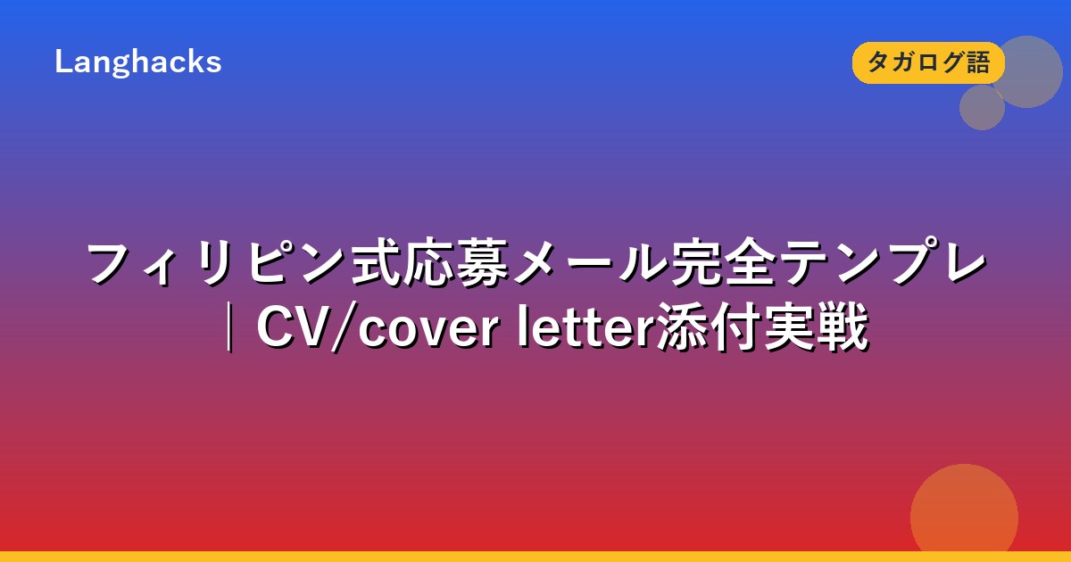 応募の全体プロセスは、タガログ語の採用・転職メール完全ガイドで展開しています。
