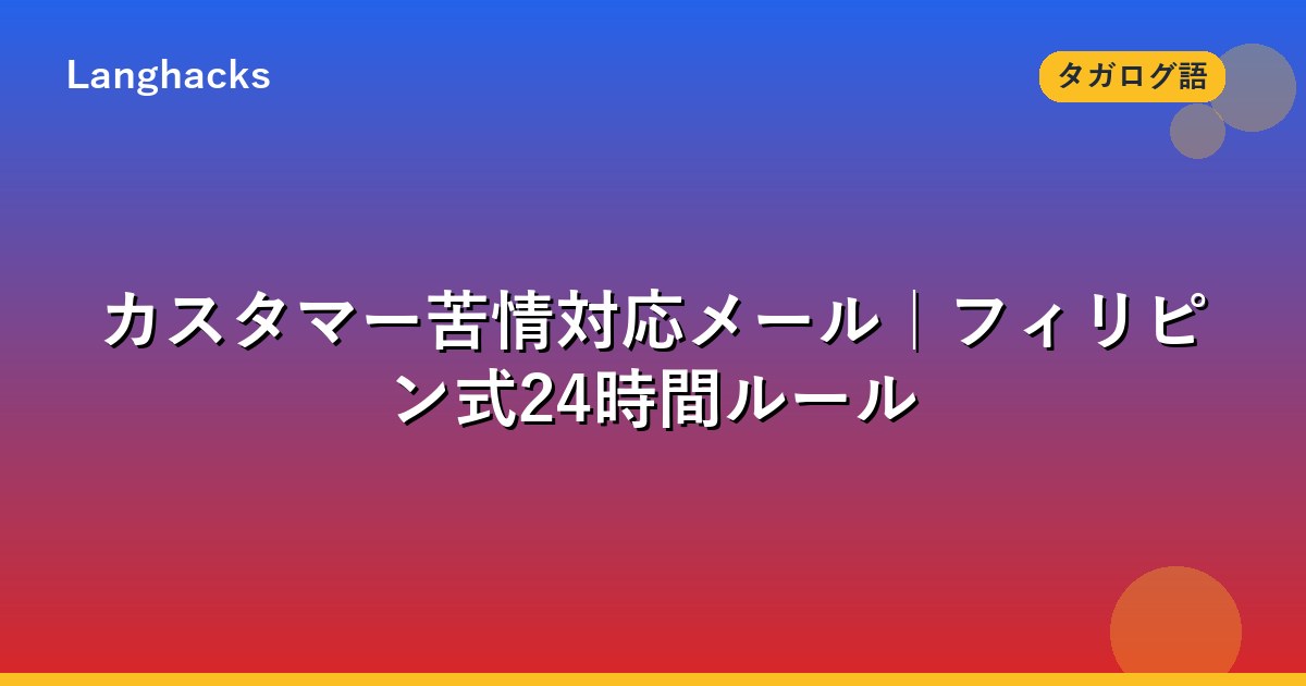 トラブル対応の全体像は、タガログ語のトラブル対応メール完全ガイドで展開しています。