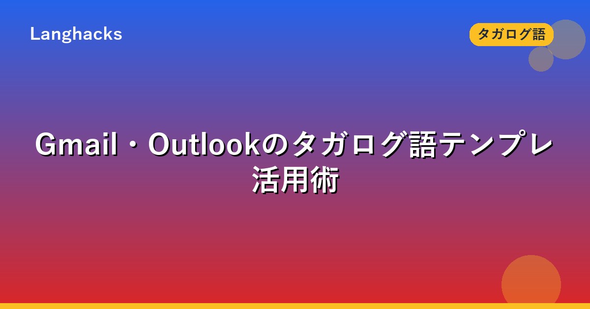Gmail・Outlookのタガログ語テンプレ活用術はフィリピンビジネス効率化の核心スキルです。