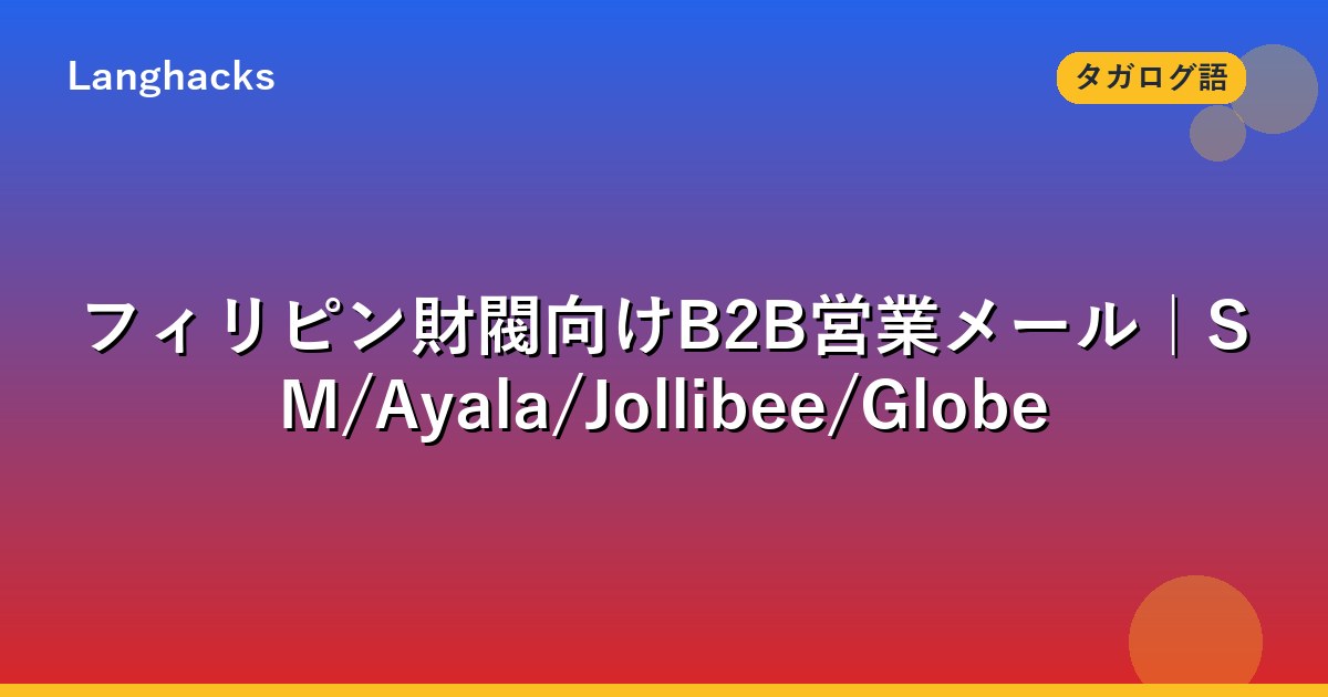 フィリピン財閥向けB2B営業メールは、SM Group、Ayala Corp、Jollibee Foods、Globe Telecom等への独自作法があります。