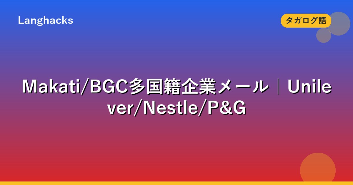 Makati/BGC多国籍企業メールはフィリピンの欧米系・アジア系本社主導企業向け作法です。