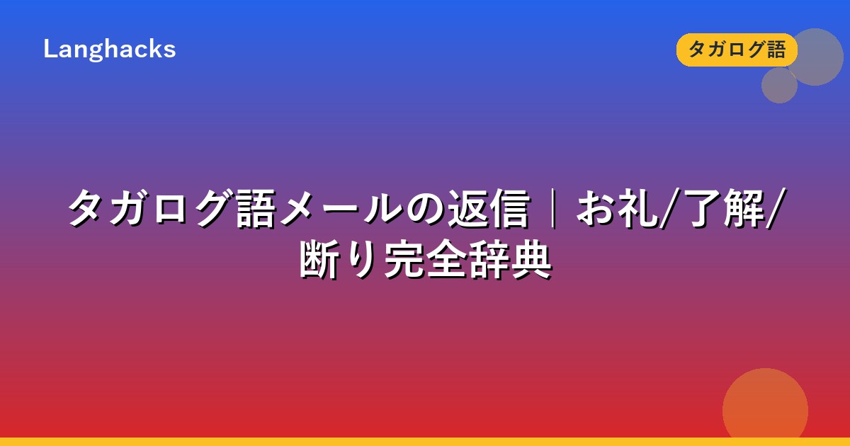 断り返信の詳細は、タガログ語メールで断る・辞退するフレーズ15選で展開しています。