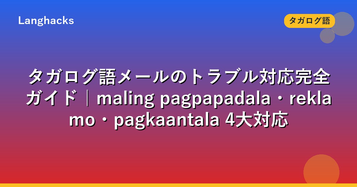本記事ではmaling pagpapadala(誤送信)、reklamo(苦情)、pagkaantala(遅延)の各対応を完全ガイドします。