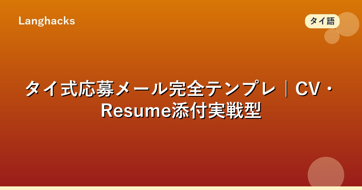タイ式応募メール完全テンプレ|CV・Resume添付実戦型