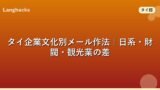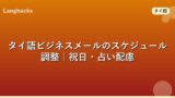 関連記事としてタイ語ビジネスメールの書き出し、タイ語ビジネスメールの件名、タイ語メールの依頼フレーズもあわせて確認してください。