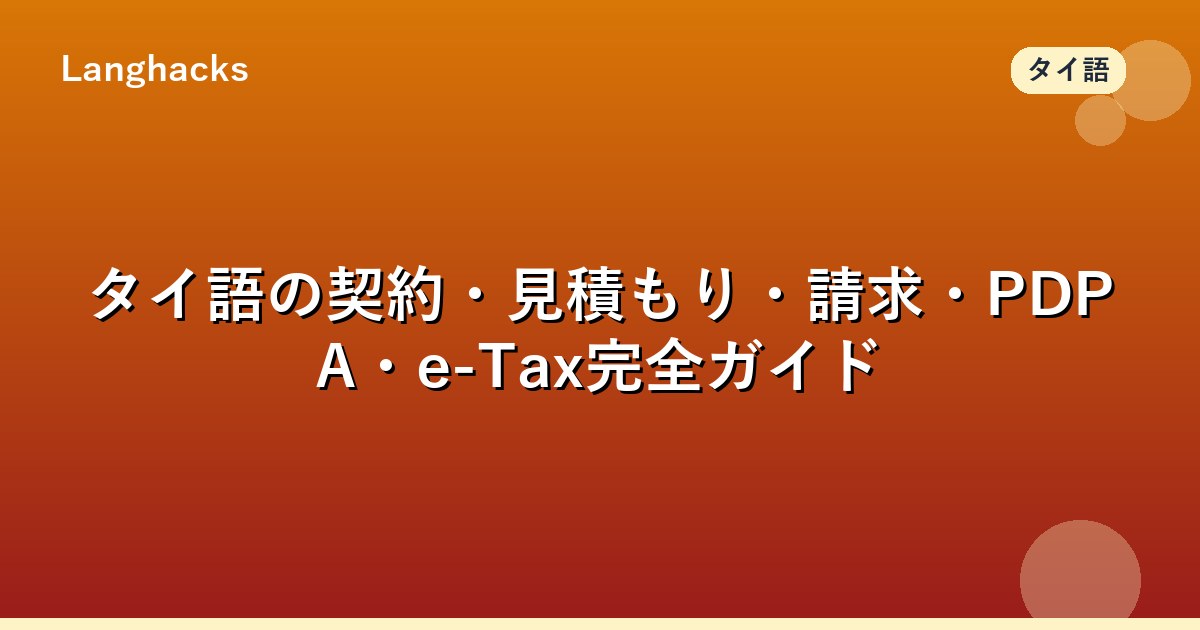 総論はタイ語ビジネスメール総論、PDPA詳細はタイPDPAメール、e-Tax詳細はe-Tax Invoiceメールを参照すると、契約関連の全体像が体系化されます。