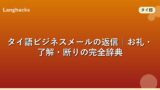 関連記事としてタイ語ビジネスメールの返信タイ語メールの依頼フレーズタイ語ビジネスメールの謝罪もあわせて確認してください。