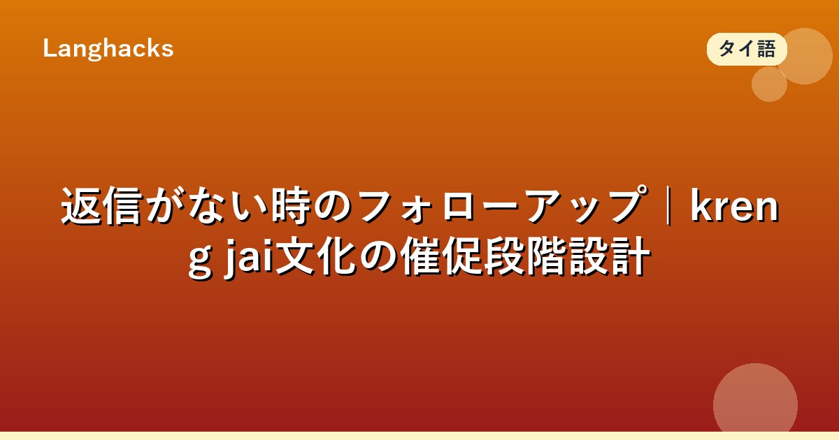 タイ語フォローアップメールはkreng jai文化下で段階的な催促設計が必要です。