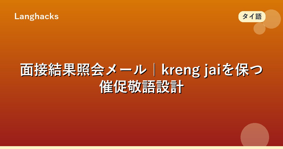 本記事では結果通知期限の確認、適切な催促タイミング、kreng jai配慮の表現を解説します。