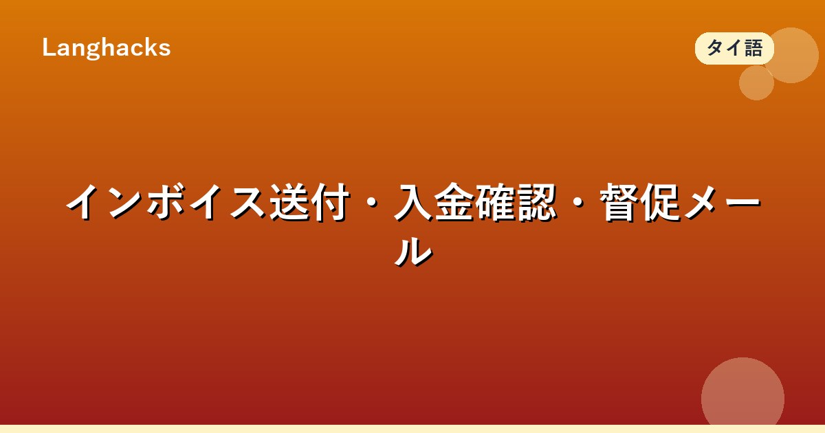 インボイス送付・入金確認・督促メールはタイ独自のTax Invoice文化への対応が要ります。