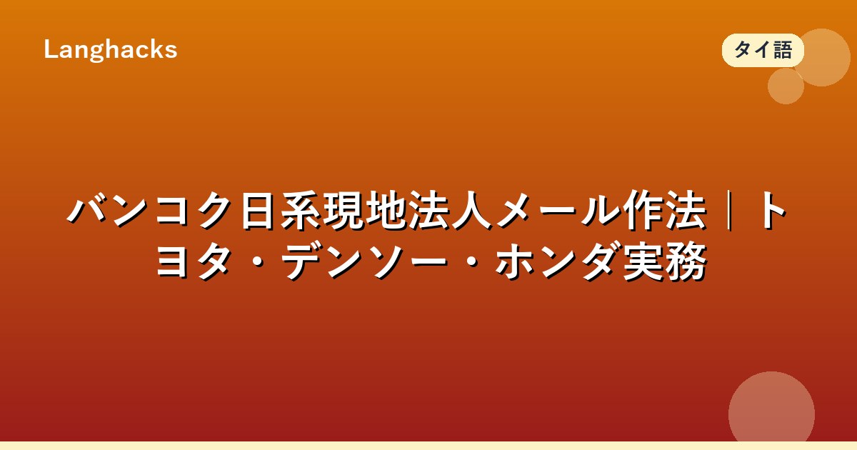 本記事は日タイ併記メールの構造、駐在員間の日本語メール、現地スタッフ向けタイ語メールを体系化します。