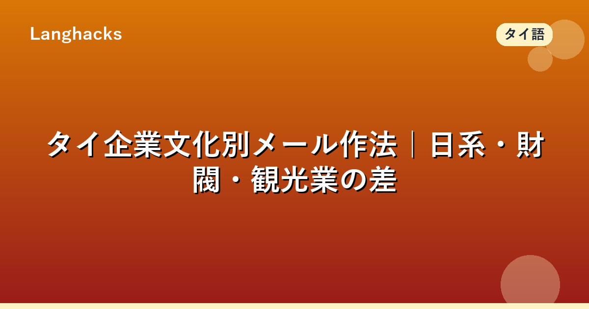 関連記事としてバンコク日系現地法人メール、タイ財閥メール格式、観光業メールもあわせて確認してください。