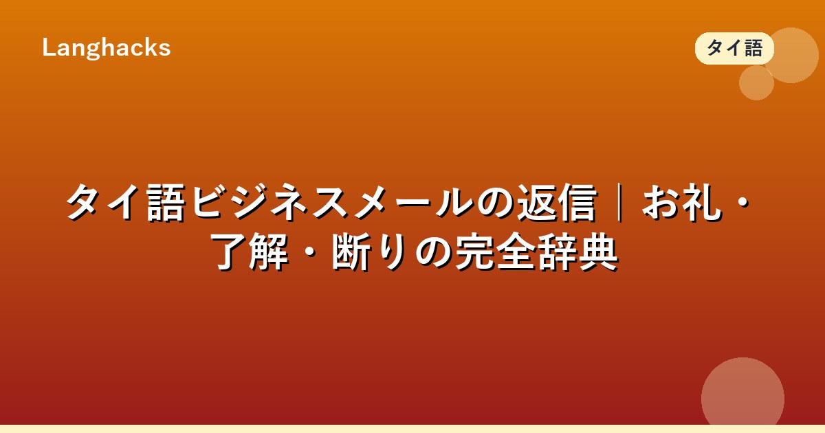 総論はタイ語ビジネスメール総論、催促時の返信はタイ語ビジネスメールの催促を参照すると、返信の使い分けが体系化されます。