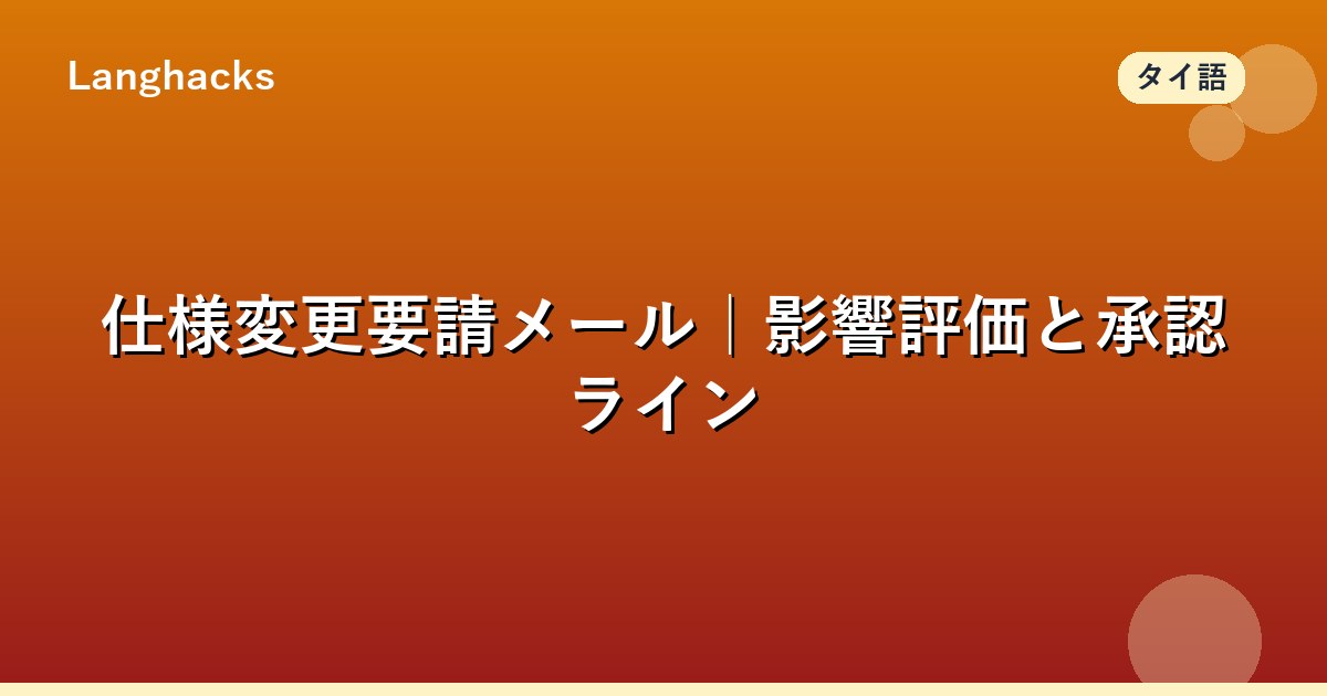 「2週間遅延・追加50,000バーツ・テスト工数倍増」のように具体化します。