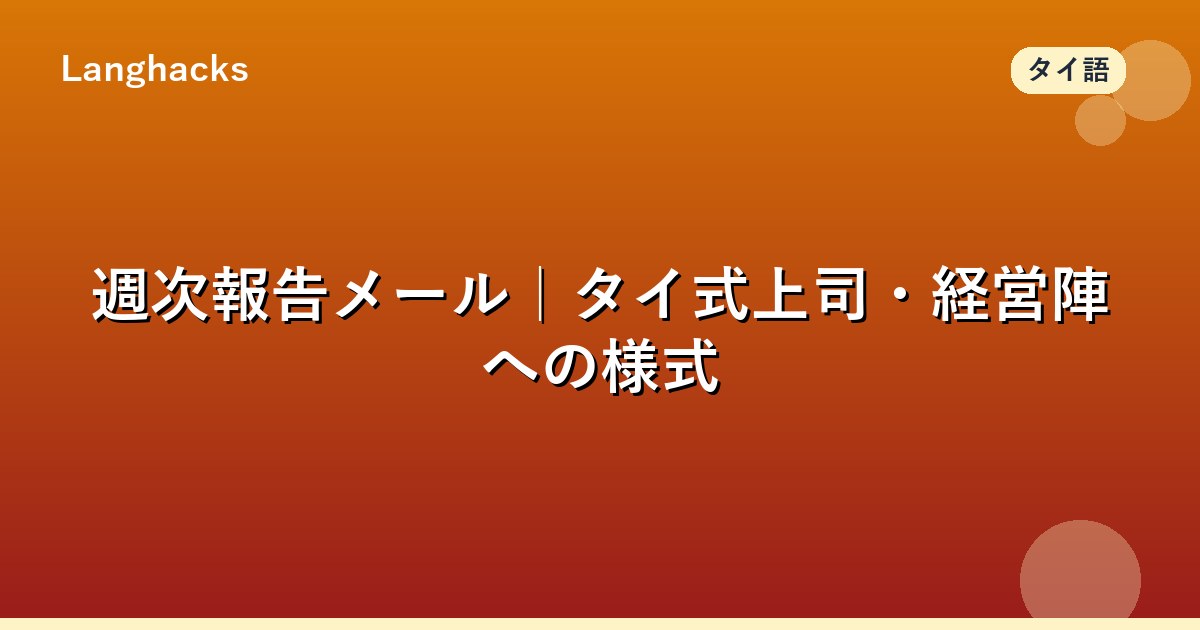 タイ式週次報告メールはAchievement・In Progress・Blocker・Next Weekの4セクション構造が標準です。
