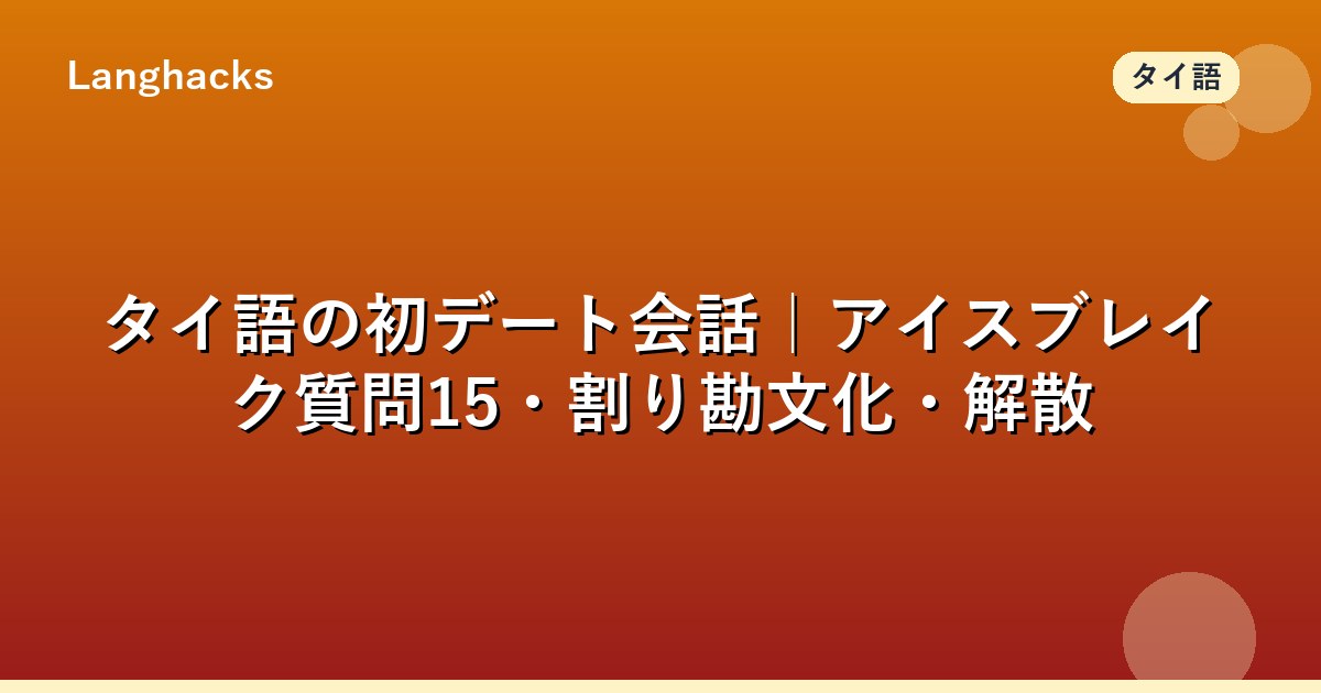 本記事ではタイ語のアイスブレイク質問15、奢り合い文化、第二デート誘導フレーズを網羅します。