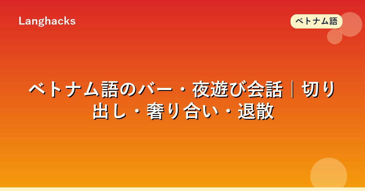 本記事はベトナム語のバー・夜遊び会話完全ガイドです。