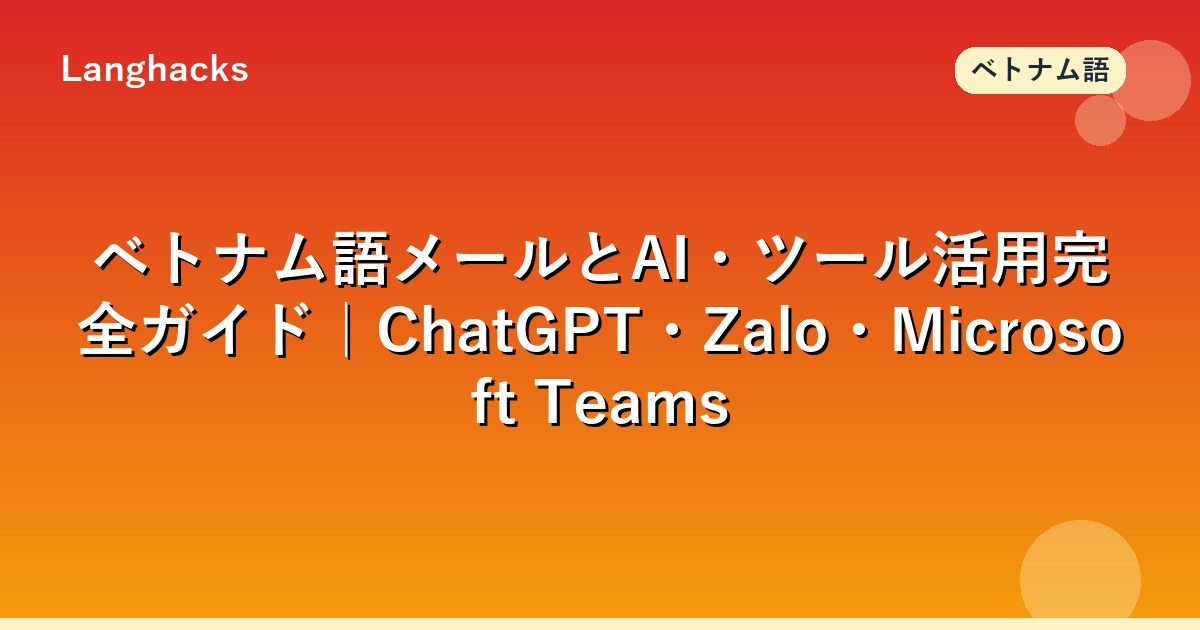 本記事ではベトナム語AI生成の現状(2024-2025)、ChatGPTでベトナム語メール作成のプロンプト構造、Zaloビジネス活用、Microsoft Teamsでのコラボレーションを完全テンプレ化しました。